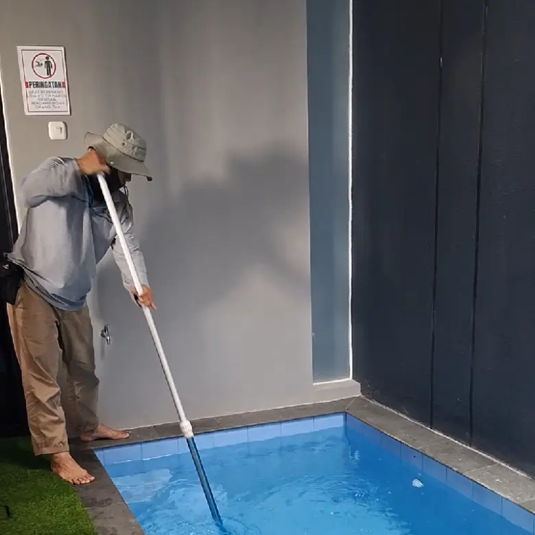 "Kolam renangnya bersih dan terawat, Di Villa tersedia pelampung anak. Jadi anak anak betah berenang".