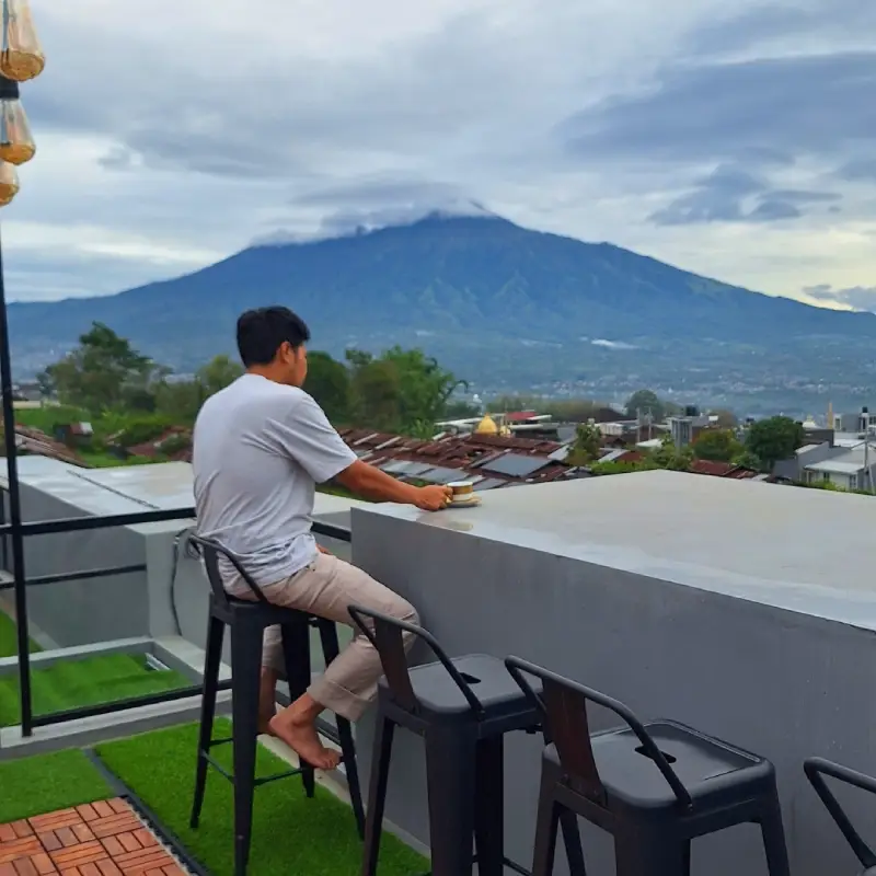 Rooftop estetik yang menyuguhkan panorama indah gunung panderman dan gemerlap lampu Kota Batu.