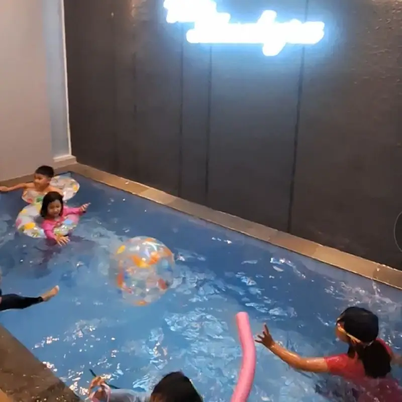 "Kolam renangnya bersih dan terawat, Di Villa tersedia pelampung anak. Jadi anak anak betah berenang".